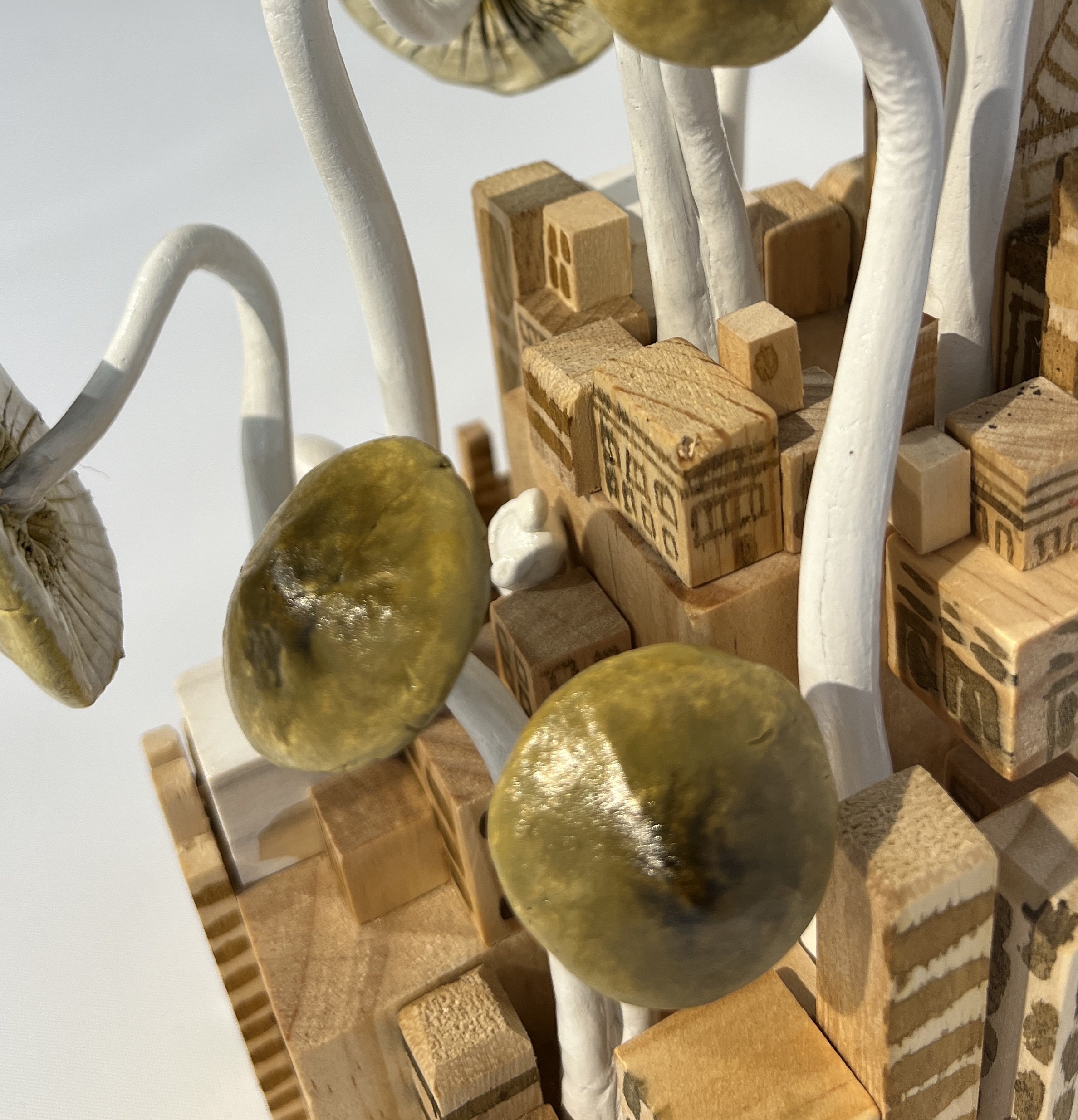 Wood, acrylic ink & stone clay