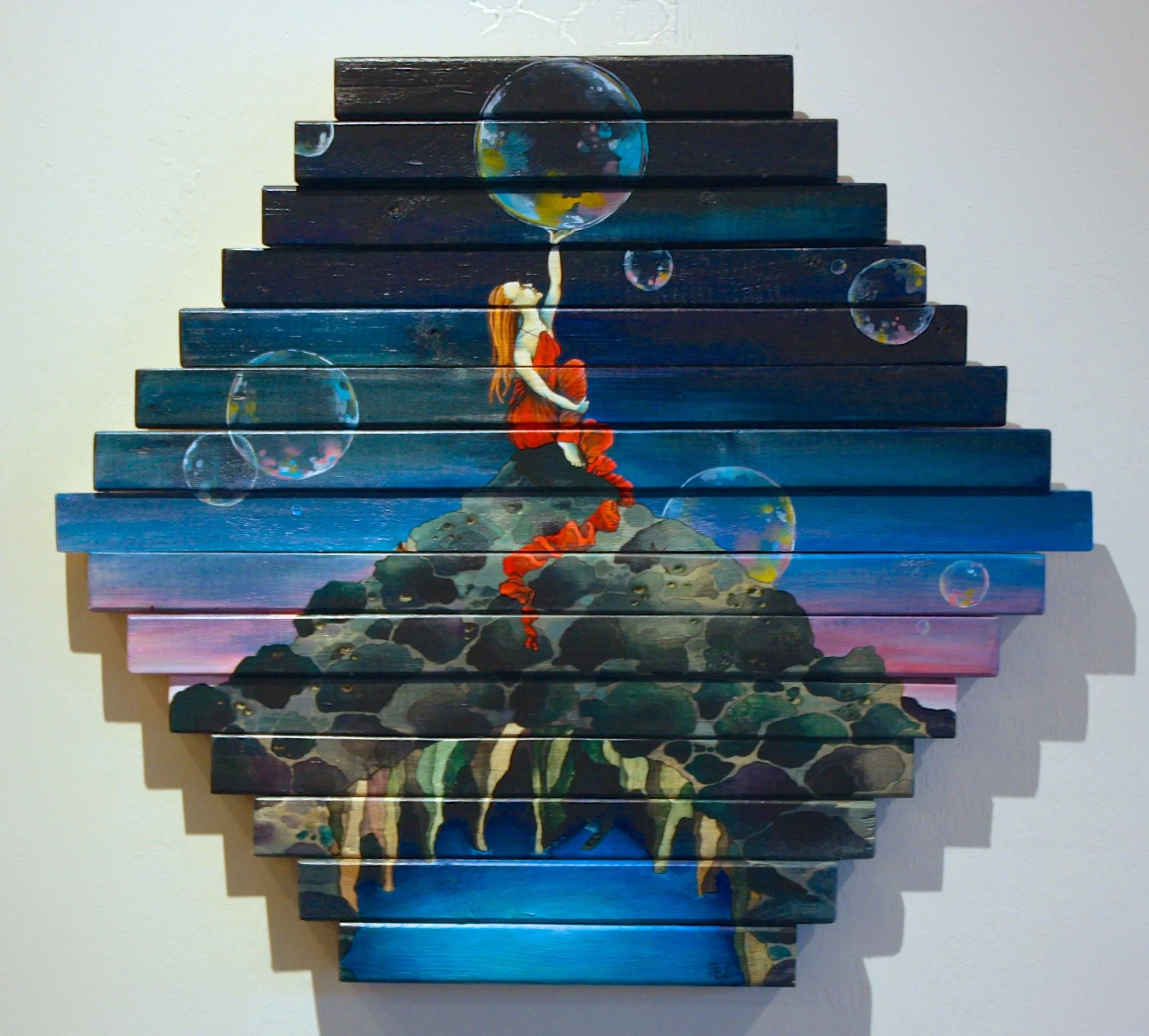 Acrylic ink on wood assemblage